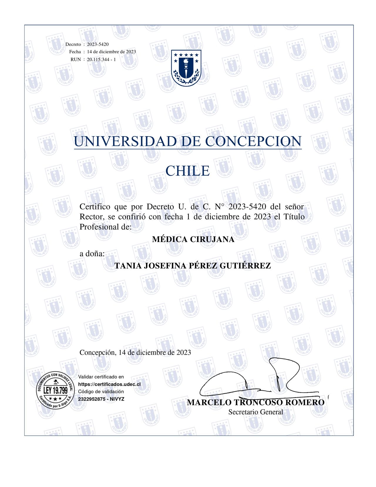 La doctora Tania Pérez es una excelente profesional. Destaco mucho su amabilidad y cercanía al atender, siempre hace sentir cómodo y escucha con atención. Explica todo de forma clara y se nota su compromiso con los pacientes. Muy simpática, respetuosa y dedicada. La recomiendo totalmente.
